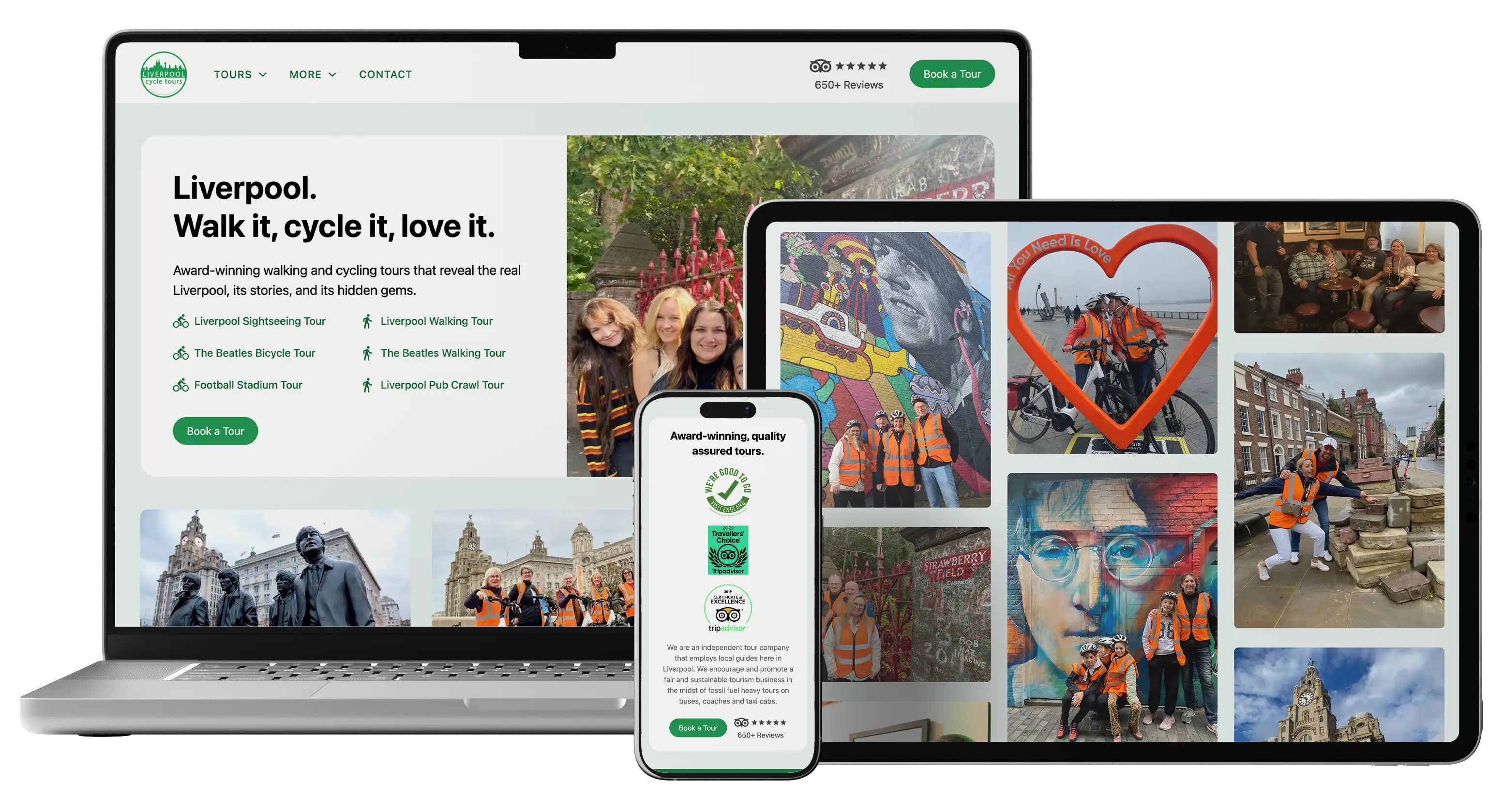 Our redesign positioned Liverpool Cycle Tours as a must-do experience for visitors to the city. The new website brings the energy of the tours to life, showcases five-star reviews and award wins, and makes booking a ride quick and seamless. The result is a vibrant online presence that builds trust, boosts direct bookings, and keeps the bikes rolling all year round.